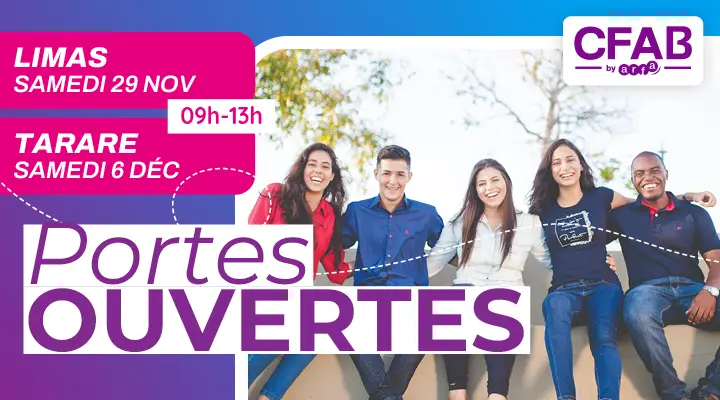 Le CFA du Beaujolais vous invite à ses journées portes ouvertes le Samedi 29 Novembre de 9h à 13h à Limas et le Samedi 6 décembre de 9h à 13h à Tarare. Venez visiter et nous rencontrer !
